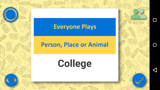 • person, animal or PLACE: If we visualize the person, animal or yellow place label, plays represent a drawing of the category "person, animal or place" also include familiar characters. Examples of some words: Dog, Superman, Cabin, Papa.