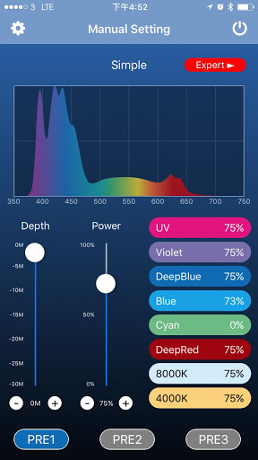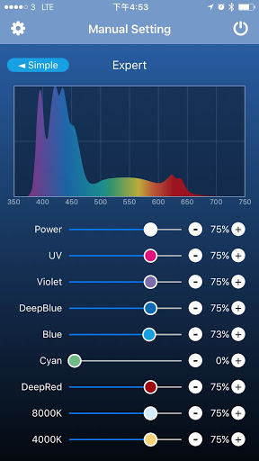 Control and program your eco-lamps SP200 product wireless with ture reed Depth Spectrum, ture Coral Photosyntheris, Coral Color Rendering, ture coral Fluorescent Protein.Contains supported languages: Simplified Chinese, Traditional Chinese, English, German, French, Spanish, Portuguese, Italian, Dutch, Japanese.