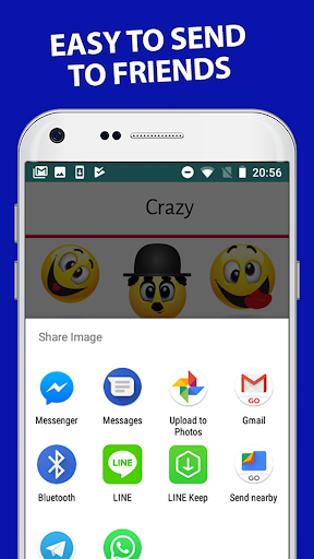 클릭하는 스마일을 클릭 한 다음 Whatsapp 또는 Facebook Messenger와 같은 메신저 응용 프로그램을 선택하고, 재 밌 지를 공유하고 싶은 친구를 선택하십시오.스마일은 당신의 친구와 보낼 것이고 공유됩니다.슈퍼 사용하기 쉽습니다!