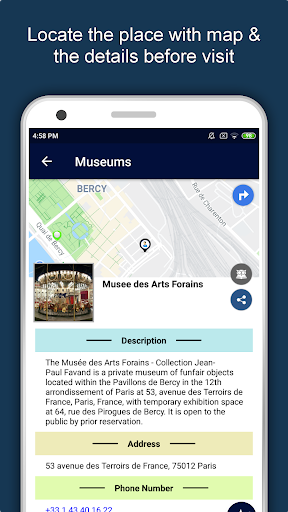 , 파리 여행 & 탐험 가이드 가이드,시기 및 상세한지도에 정확한 위치가있는 파리의 다양한 장소를 방문하는 이유를 안내합니다. 이 응용 프로그램을 탐색하는 두 가지 방법이 있습니다 - 카테고리보기 및 Edubank 즐겨 찾기 장소보기. 목적지를 고정하고지도에서 경로를 가져 오십시오. 뿐만 아니라이 앱에 스트리트 뷰와 함께 장소가 어떻게 보이는지 정확히 볼 수 있습니다. 이 앱에는 로그인을 통해 엔티티 (들)에 관한 검토 / 경험을 평가하고 쓸 수있는 기능이 있습니다. 여행 경험과 평가가 사용자 커뮤니티에 도움이됩니다.
