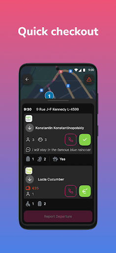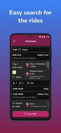 응용 프로그램을 통해 Emile Weber 드라이버는 일정 및 여행 세부 사항에 빠르게 액세스 할 수 있습니다.실시간 업데이트 및 예약 세부 정보를 포함하여 다가오는 교대에 대한 모든 필요한 정보가 표시됩니다.운전자는 도착/출발을보고, 승객을 보드/하락하고, 정거장을 탐색하고, 비상 사례를보고 할 수 있습니다.