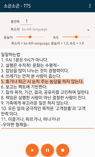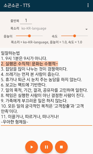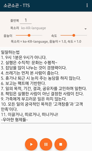 입력된 텍스트를 대신 읽어준다 받아쓰기할때처럼 줄단위로 반복하여 읽는다 Google TTS(Text-to-Speech) 구현 ---- 개발자 연락처 : as.enoosoft@gmail.com 821091445562