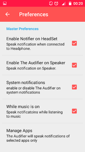 -- You can customize the preferences to speak notifications on different phone states like when connected to headphone, enable speaking on speaker, system notifications etc.