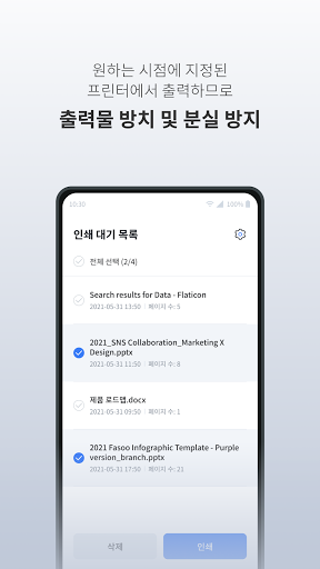 Fasoo Smart Print 애플리케이션을 통해 사무실, 가정 어디서나 정보 유출의 위험 없이 안전하게 문서를 인쇄할 수 있습니다.