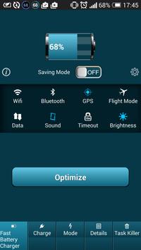 Fast charger battery app speeds up the charging process as well as improves the battery efficiency. It works by the principle of closing background apps and processes which drain out the battery. You can choose to turn them off manually as well. Application shows the percentage of the battery charged. There are icons which you can use to turn on/off according to your desire.