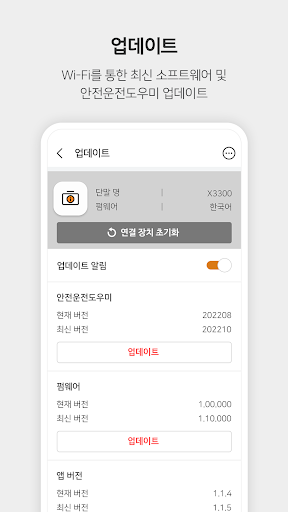 Wi-Fi 연결을 통해 블랙박스 최신 펌웨어 및 안전운전도우미(월 1회) 업데이트를 지원합니다.