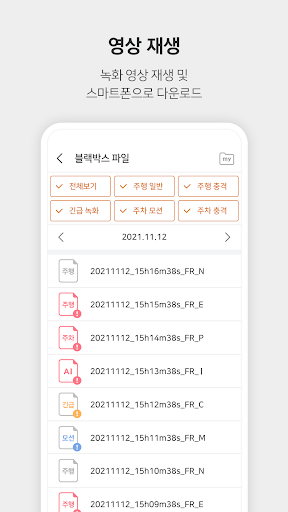 블랙박스 파일에서 다운로드한 영상을 보관하여 블랙박스와 스마트폰이 연결되어 있지 않아도 영상을 확인할 수 있습니다.