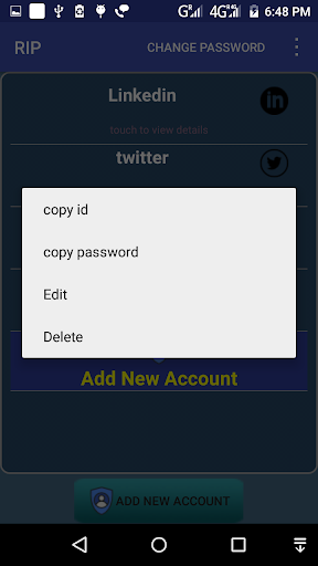 Remember Ids & Password (RIP) a very simple application helps to reduce mental effort to remember all your account ids and password.