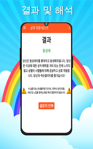 당신의 성적 취향이 무엇인지 확실하게 확인하기 위해 지원 테스트를보십시오. 당신의 삶과 취향에 대한 질문에 쉽게 대답 할 수 있습니다. 당신은 당신의 성적 지향이 무엇이며 왜 그런지 자세히 설명하는 결과를 얻을 것입니다.