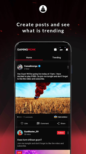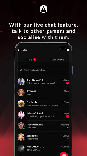 DISCOVER: Create your own esports community with GamingMonk. With our social feed, you can create and share your gaming content, discover other gamers, and interact with them and grow your esports community. You can chat with your team mates and squads through the chat feature to strategize and win!