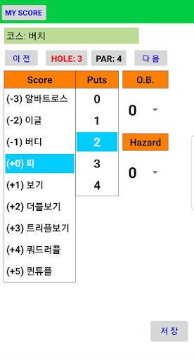 *클럽선택/수정 *스코어카드/스코어입력 *다른홀 선택
