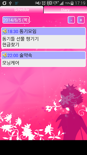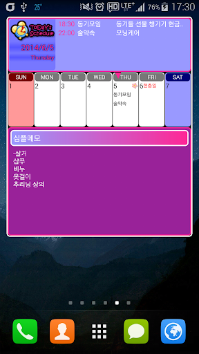홈 화면에 제공되는 위젯을 통해 일정과 약속, 오늘의 일기를 편리하게 사용하실 수 있습니다.