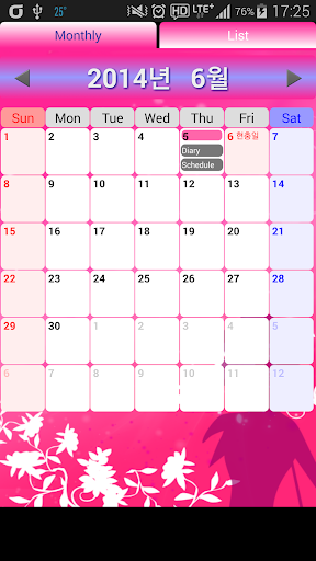*리스트 달력 : 스케쥴 및 다이어리를 리스트 형태로 한눈에 펼쳐 보실 수 있습니다.