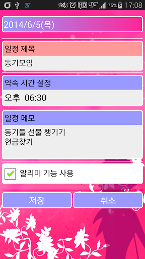 *일정 : 알림 기능을 통해 입력하신 시간에 알림팝업을 띄워 스케쥴이나 할일을 잊지않고 지킬 수 있습니다.