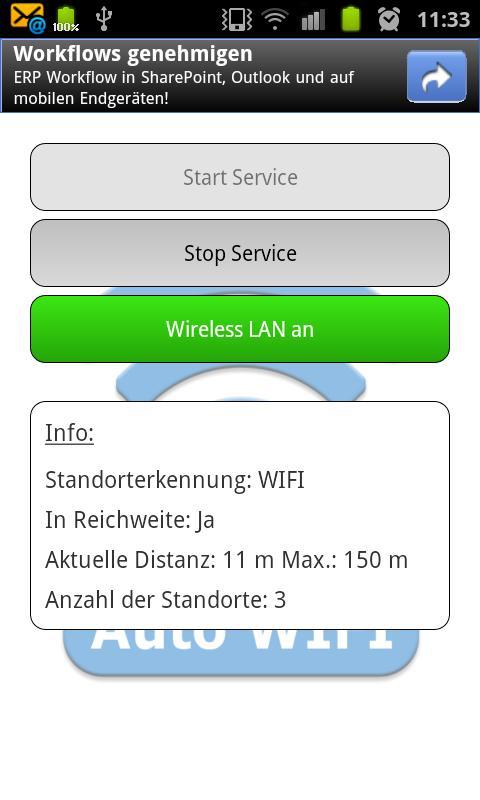 Auto Wifi is designed to extend your smartphone battery life, it automatically shuts off and turns on the WLAN. (Wireless toggle or WiFi toggle switch)
