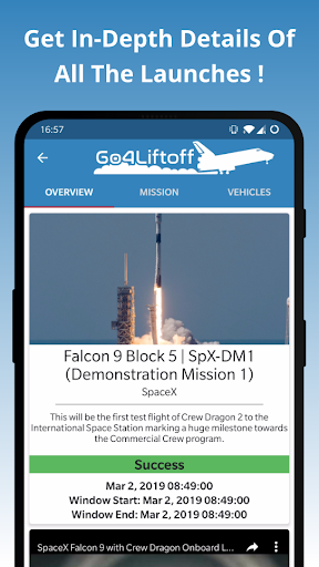 • In-App viewing of live launch webcasts as well as recorded broadcast of past launches