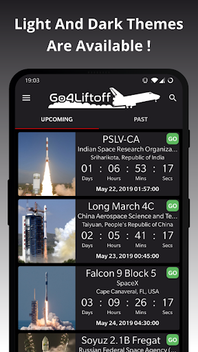 Welcome to Go4Liftoff; your one stop app for keeping track of and keeping up to date with both upcoming and past events in the world of spaceflight. We track all orbital launches and much more including activity from SpaceX, Rocket Lab, NASA, ULA, ROSCOSMOS, ISRO, Blue Origin, Arianespace and many more!