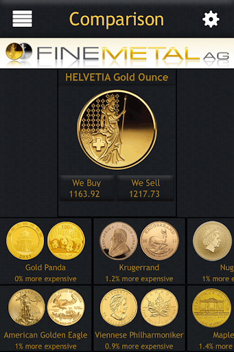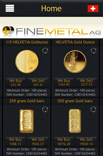 The Finemetal App offers users the price of one Helvetia Fine-Gold Ounce in the desired currency, in real time. For more information: www.finemetal.ch