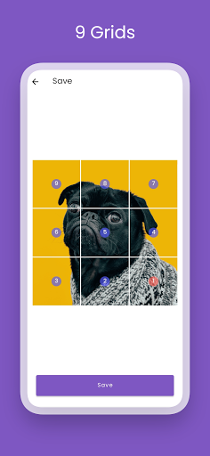 9 그리드 - 5 가지 그리드 유형으로 사진을 자릅니다 : (3 x 3), (3 x 2), (3 x 1), (2 x 2), (2 x 1).