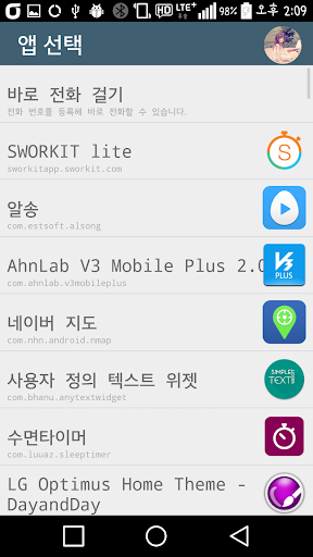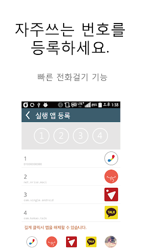 퀵메뉴에 4가지 어플을 등록할수 있습니다.