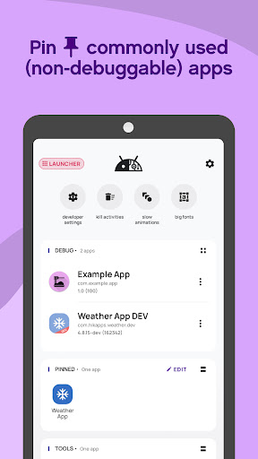 System launcher tailored to the needs of Android App Developers!