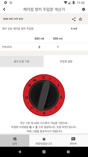 힐티 케미컬 앵커 주입량 계산기는 공사 관련 전문가들에게 시공에 필요한 케미컬 앵커 소요량을 쉽게 예측할 수 있게 합니다. 이는 작업 현장에서도 간편하게 조회하실 수 있습니다! 맞춤형 결과 조회 기능으로 현장 조건에 따라 계산 방법을 조정하실 수 있습니다.
