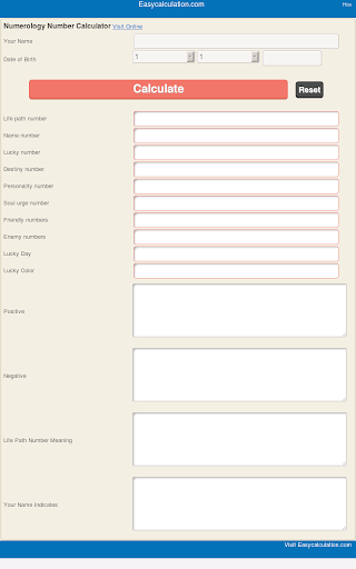 Calculate Life Path number, Name number, Lucky number and Personality Numbers using this numerology number calculator.