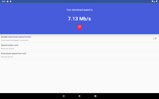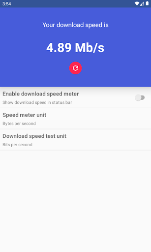 속도 테스트 : 인터넷 연결의 다운로드 속도를 즉시 테스트하십시오. 속도 측정기 : 스피드 미터를 사용하여 다운로드 및 업로드 속도를 지속적으로 모니터링합니다...에다운로드 속도는 안드로이드 장치의 상태 표시 줄에 표시됩니다. 속도의 단위를 변경하십시오 : 당신은 다른 단위의 인터넷 속도를 볼 수 있습니다 (초당 비트 또는 바이트초당)