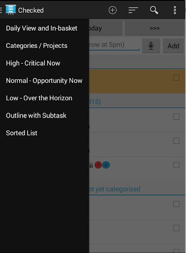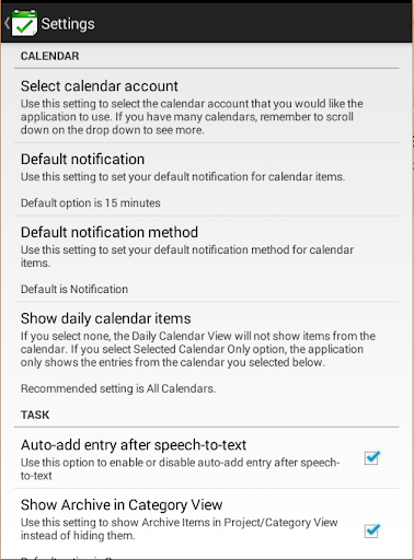 - Use Speech to text icon to automatically add new task and calendar entry: e.g. Meet John tomorrow (use keyword similar to Smart Add feature below).