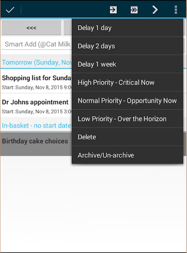 - SMART task system - de-cluster your task list and focus on your most important task combining the most popular methodologies: support in-basket features, daily view mode, quickly move items, and more.