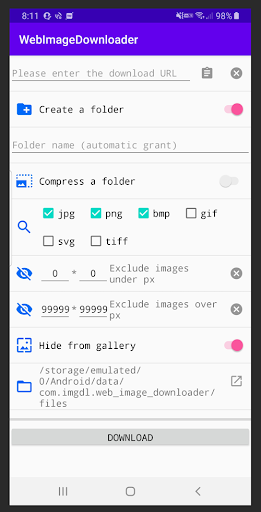 - 이미지 크기 (상한, 하한)를 다운로드에서 제외 할 수 있습니다.