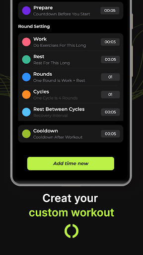 사용자 정의 가능한 기능으로 자신의 운동을 설정, 편집 및 저장하십시오.원하는만큼의 간격을 추가하십시오.운동 간 5 초 간격뿐만 아니라 10 초 휴식 기간과 20 초의 작업 기간을 추가 할 수 있습니다.