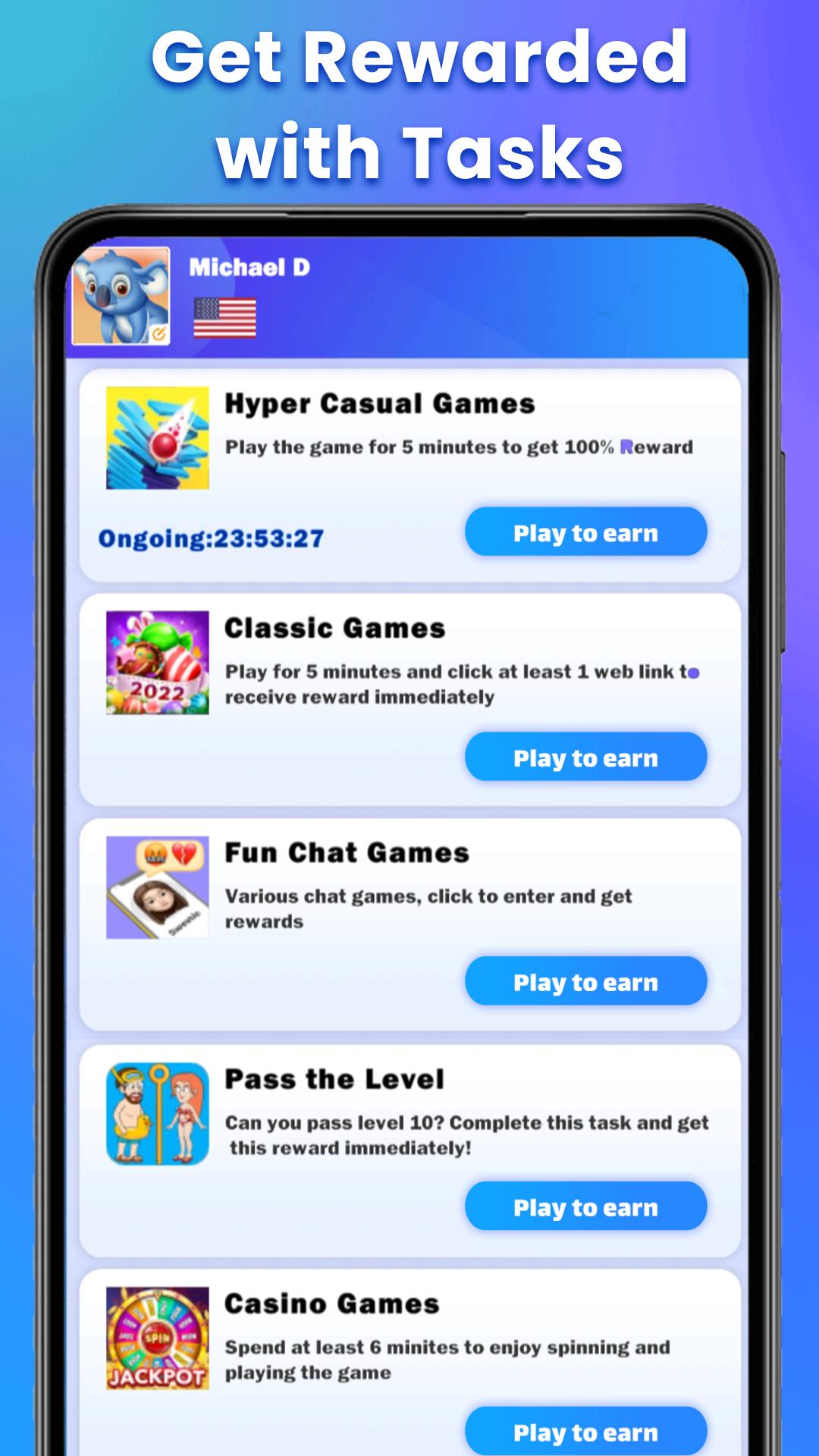 Once you start playing, we track your active time in the game. Throughout the games, you will collect coins that you can exchange with money.