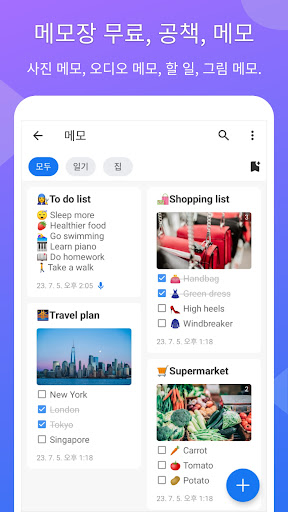 - 사진 메모, 오디오 메모, 할 일, 그림 메모.