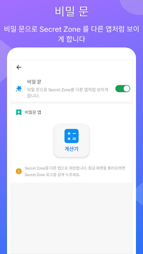 - 비밀 문으로 Secret Zone 를 다른 앱처럼 보이게 합니다