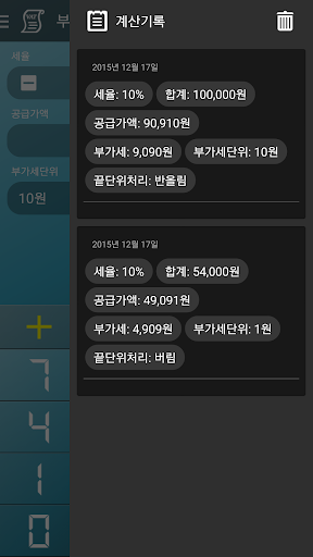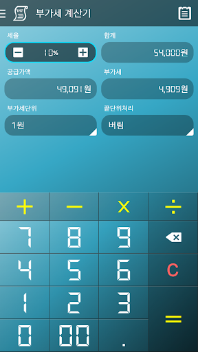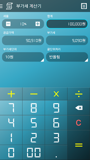 계산기 어플 중 최고를 자랑하는 멀티 계산기의 부가세 계산기 파트 입니다.