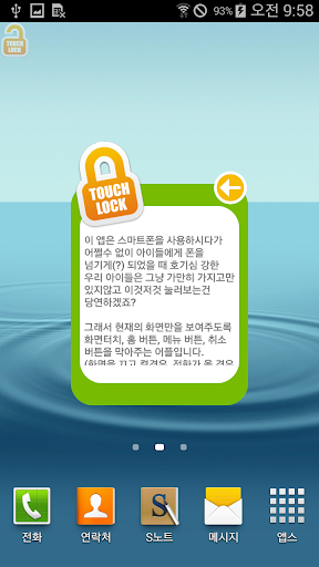 그래서, 현재의 화면만을 보여주고 화면터치, 홈 버튼, 메뉴 버튼, 취소 버튼을 막아주는 앱을 만들어 보았습니다.