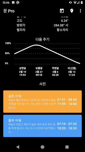 -사진 촬영 시점을 계산할 수 있게 골든 아워와 블루 아워를 확인할 수 있습니다.