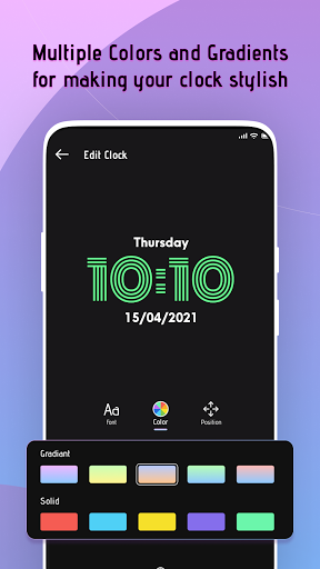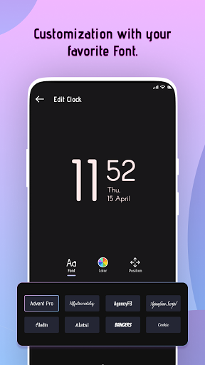 - 사용자 정의 화면에서 원하는 글꼴, 색상, 그라디언트 색상 및 위치를 선택할 수 있습니다. 시계.