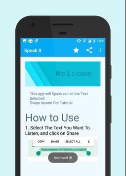Just Select The Text, Tap on Share Button, Select Speak It, and that all.
