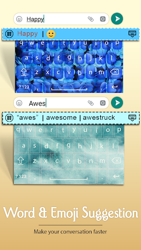 A beautiful Sweet Blue Keyboard with amazing features is designed for those who like sending message with GIF, emoticon and emoji. It is a MUST HAVE free android stylish emoji keyboard.
