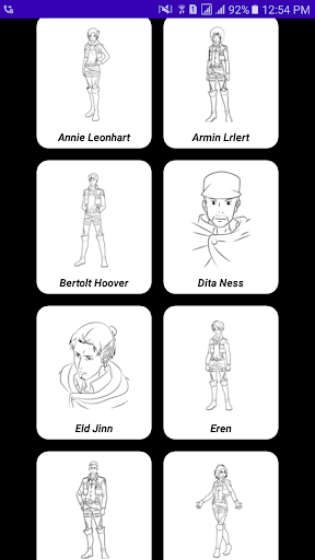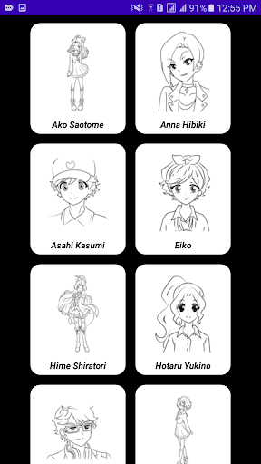 이 앱은 많은 만화에 포함되어 있습니다.그리기 및 유명한 만화 캐릭터는 그리기를 시작 해야하는 애니메이션을 선택하면됩니다.