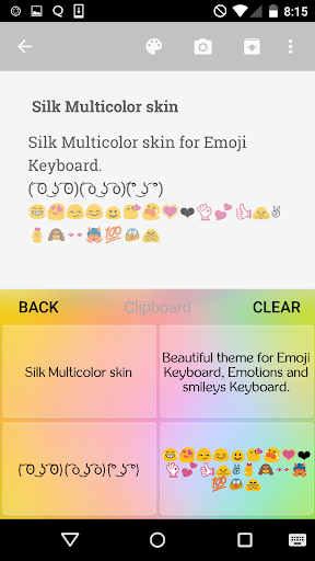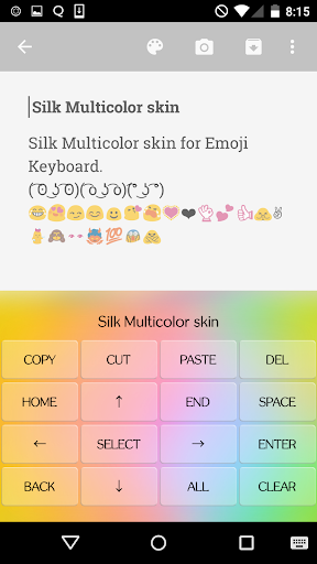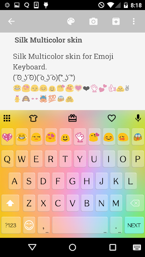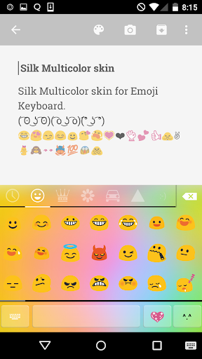 Silk Multicolor Emoji Keyboard for Emoji,Emoticons and Smileys Keyboard.Please download Emoji Keyboard from http://goo.gl/kU5sfi firstly.
