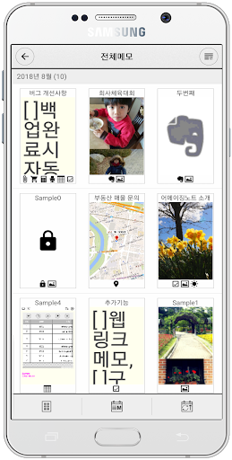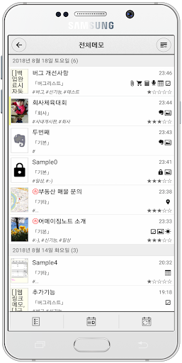 - 다양한 타입의 노트 지원 (사진, 오디오(녹음), 테이블스타일, 지도, 첨부, 쇼핑, 지출입등.)