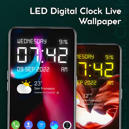 LED 디지털 시계 - 디지털 시계 라이브 벽지는 아름다운 월페이퍼를 제공하고 디지털 시계 - 스마트 클록 앱을 통해 장치 배터리, 날짜 및 시간을 표시합니다.LED Clock App에는 사용자가 장치 화면에서 설정할 수있는 놀라운 월페이퍼가 있습니다.스마트 클럭 - 디지털 알람 시계는 전체 권한을 제공하며 LED 시계의 도움으로 모든 것을 제어 할 수 있습니다.