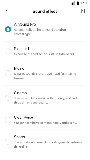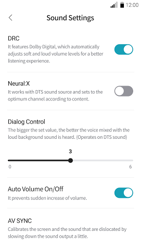 이 어플리케이션은 LG Sound Bar 전용 어플리케이션으로, 이 어플리케이션을 통하여 LG Sound Bar의 다양한 기능을 설정하거나 사운드 효과 등을 제어할 수 있습니다.