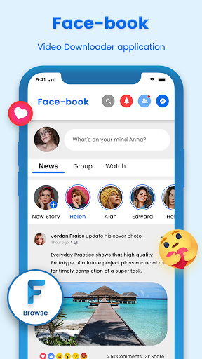 Facebook 용 비디오 다운 로더는 소셜 미디어에서 전체 HD 비디오 포맷 비디오를 다운로드하는 데 도움이되는 무료 HD 비디오 다운 로더 앱이있는 원 클릭 고속 다운로더입니다. 이 비디오 다운 로더로 이야기를 쉽게 저장하고 비디오를 게시하십시오. 또한 무료로 사용되는 가벼운 비디오 다운 로더 응용 프로그램입니다. 링크를 통해 비디오를 다운로드 할 수 있으며 사용할 수있는 브라우저가 내장되어 있습니다.