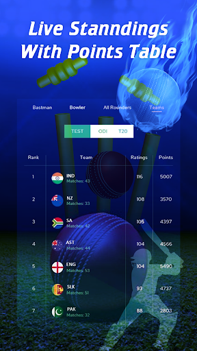 앱은 필요한 모든 것을 제공합니다 비품, 결과, 순위를 포함한 남성 및 여성 크리켓의 대회에 대해 알고 싶다