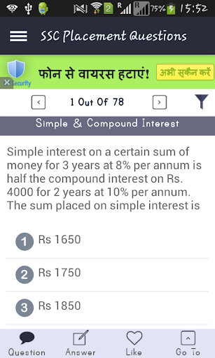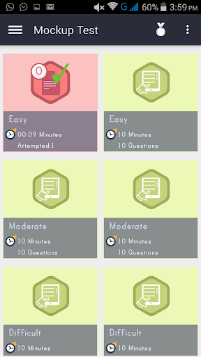 모든 사용자는 무제한 모의 테스트를 제공 할 수 있습니다. 각 모의 업 테스트에는 10 분의 시간 제한이있는 10 가지 질문이 있습니다. 이 기능을 통해 기술 세트를 향상시키고 SSC 시험에서 점수를 얻을 수 있는지 아이디어를 얻을 수 있습니다.
