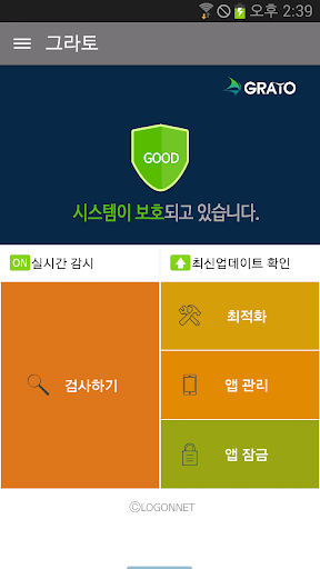 그라토 (Grato,앱잠금,백신,최적화) 백신은 휴대폰을 악성코드로부터 보호할 수 있는 백신 앱입니다.